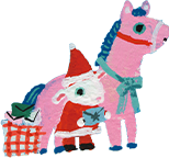 屋根裏ではサンタクロースがこっそりと贈り物の支度を始め、