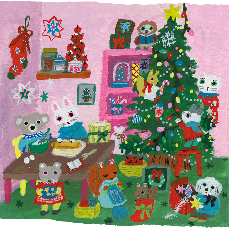 イラストレーター北岸 由美とコラボレーションした限定ショッパーをはじめ、クリスマスカラーの限定ギフトラッピングが登場!